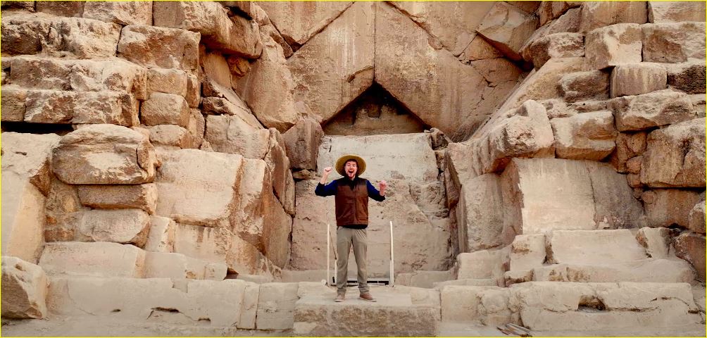 “مستر بيست” يوثّق بالصوت والصورة تفاصيل تجربته المثيرة داخل الأهرامات للعالم | شاهد