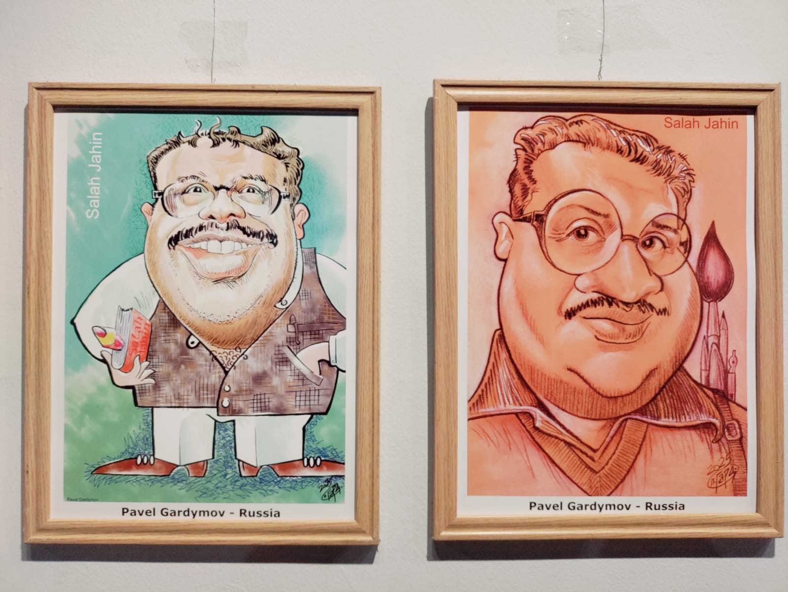 ومن جانبه قال الفنان فوزي مرسي أمين عام الجمعية ومنسق المعرض؛ إن المعرض يضم 32 لوحة أصلية تعرض لأول مرة من أعمال الراحل الكبير صلاح جاهين، تمثل جزءا من التراث الفني لمصر، بالإضافة إلى ما يقرب من 60 بورتريه كاريكاتيري رسمتها أنامل 52 فنان من دول العالم المختلفة من بينها؛ السعودية، البحرين، البرتغال، الهند، أورجواي، أسبانيا، أندونيسيا، الصين، بولندا، كوسوفو، كوبا، مقدونيا، البرازيل، بيرو، روسيا، السويد، ميانمار، بالإضافة إلى مصر.
