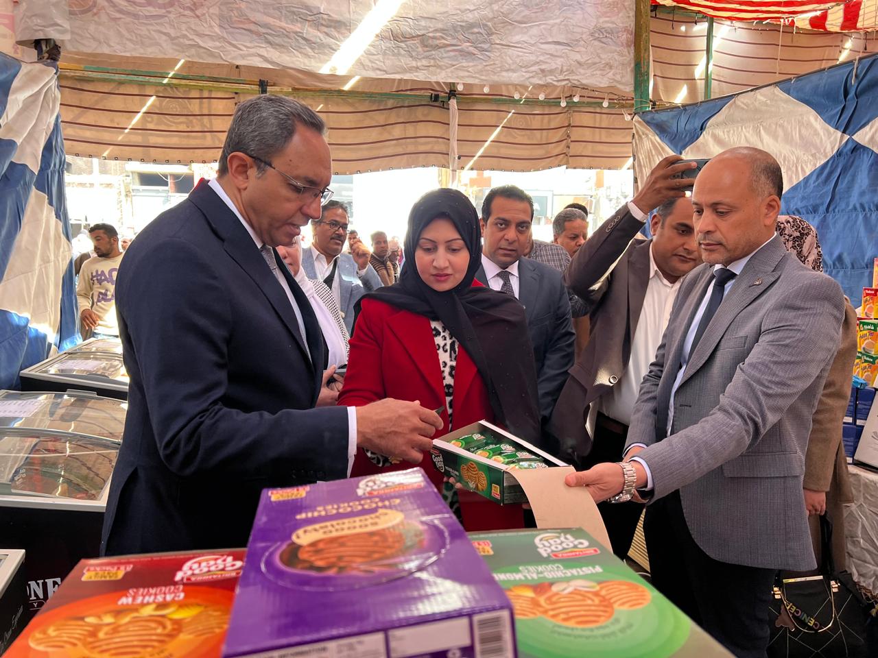 رافق المحافظ خلال الافتتاح الدكتور حازم عمر، نائب المحافظ، والعقيد تامر النجار، رئيس مباحث التموين، وحسن محمد القط، مدير عام مديرية التموين والتجارة الداخلية.