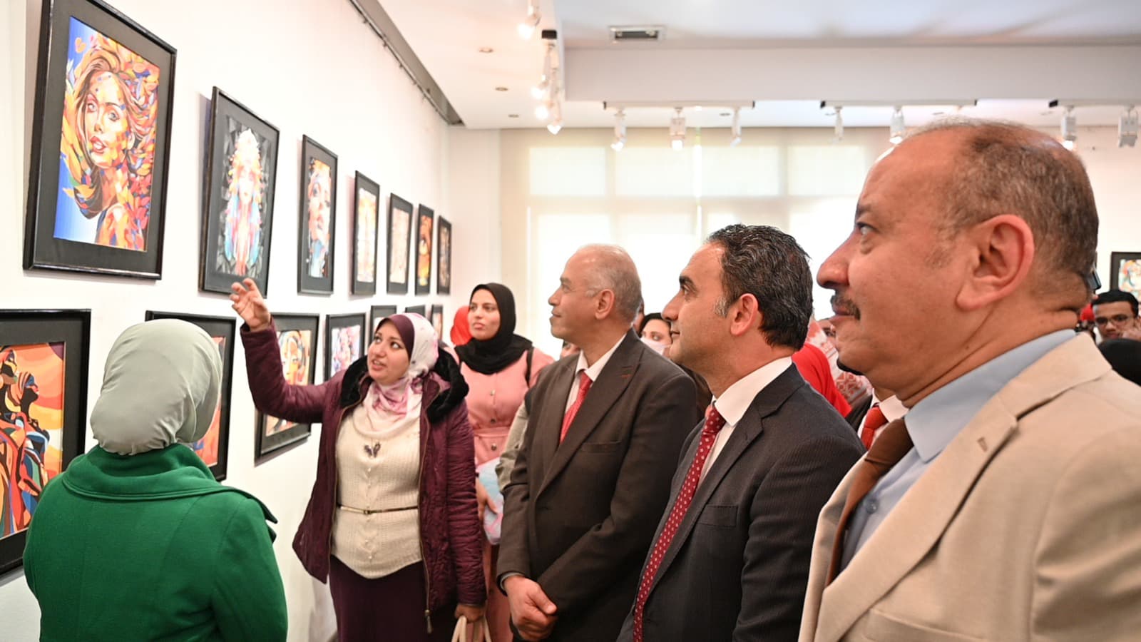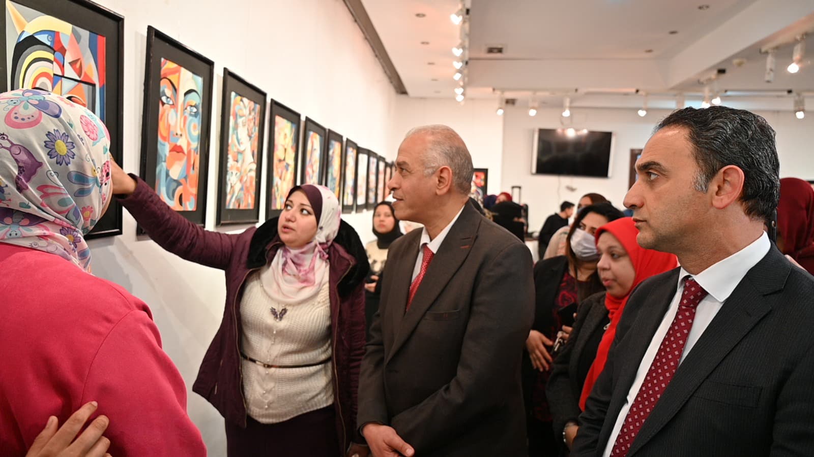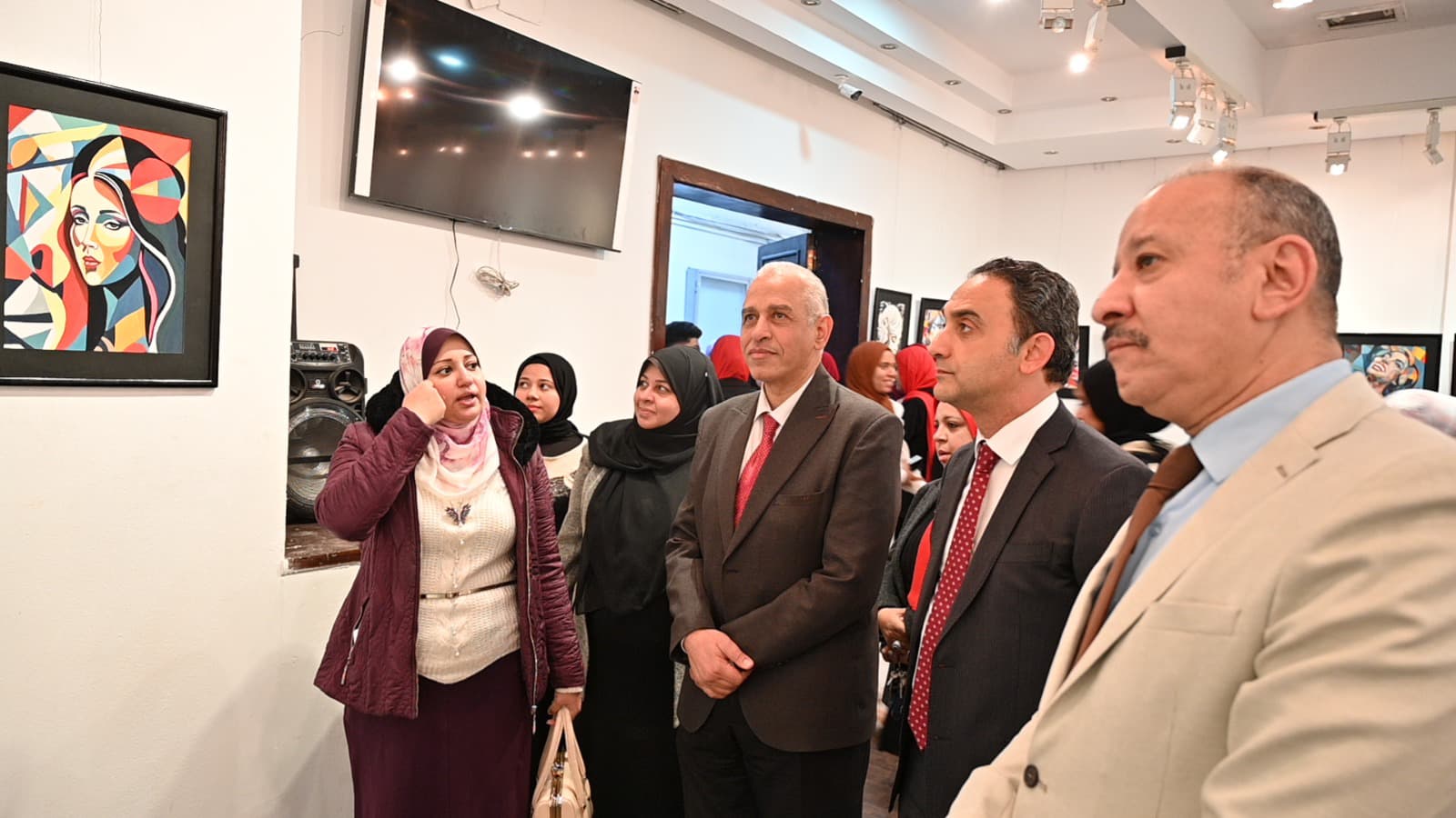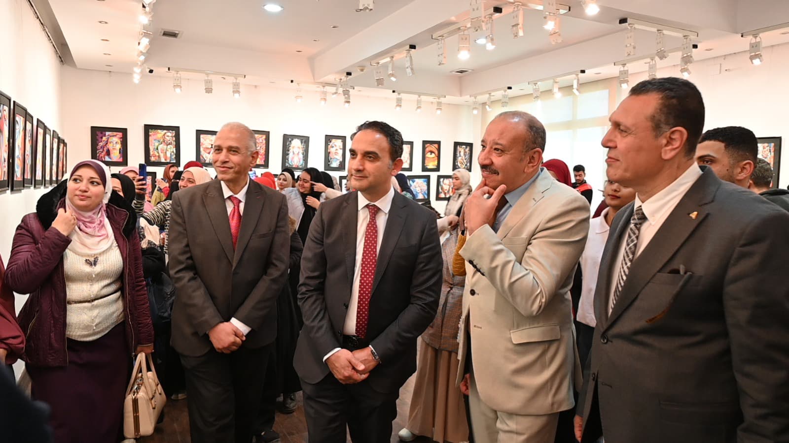 بحضور أ.د هاني عبدالبديع القائم بأعمال عميد الكلية، وأ.د أحمد فتحي عميد الكلية السابق، وأ.م.د فاطمة محمد، المشرف على المعرض، وعدد من السادة أعضاء هيئة التدريس بقسم التربية الفنية والطلاب.