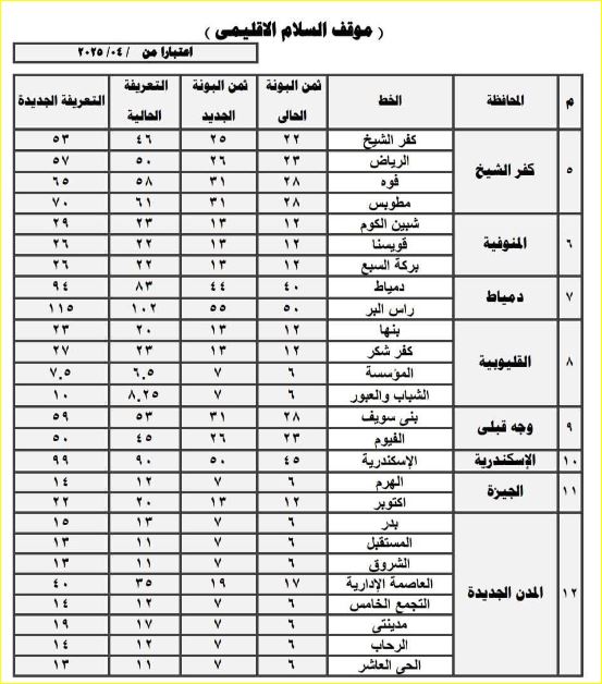 كما تم التنسيق مع المحافظات المجاورة التى ترتبط مع المحافظة بخطوط سير لضمان توحيد التعريفة فى الجانبين لمنع استغلال المواطنين.