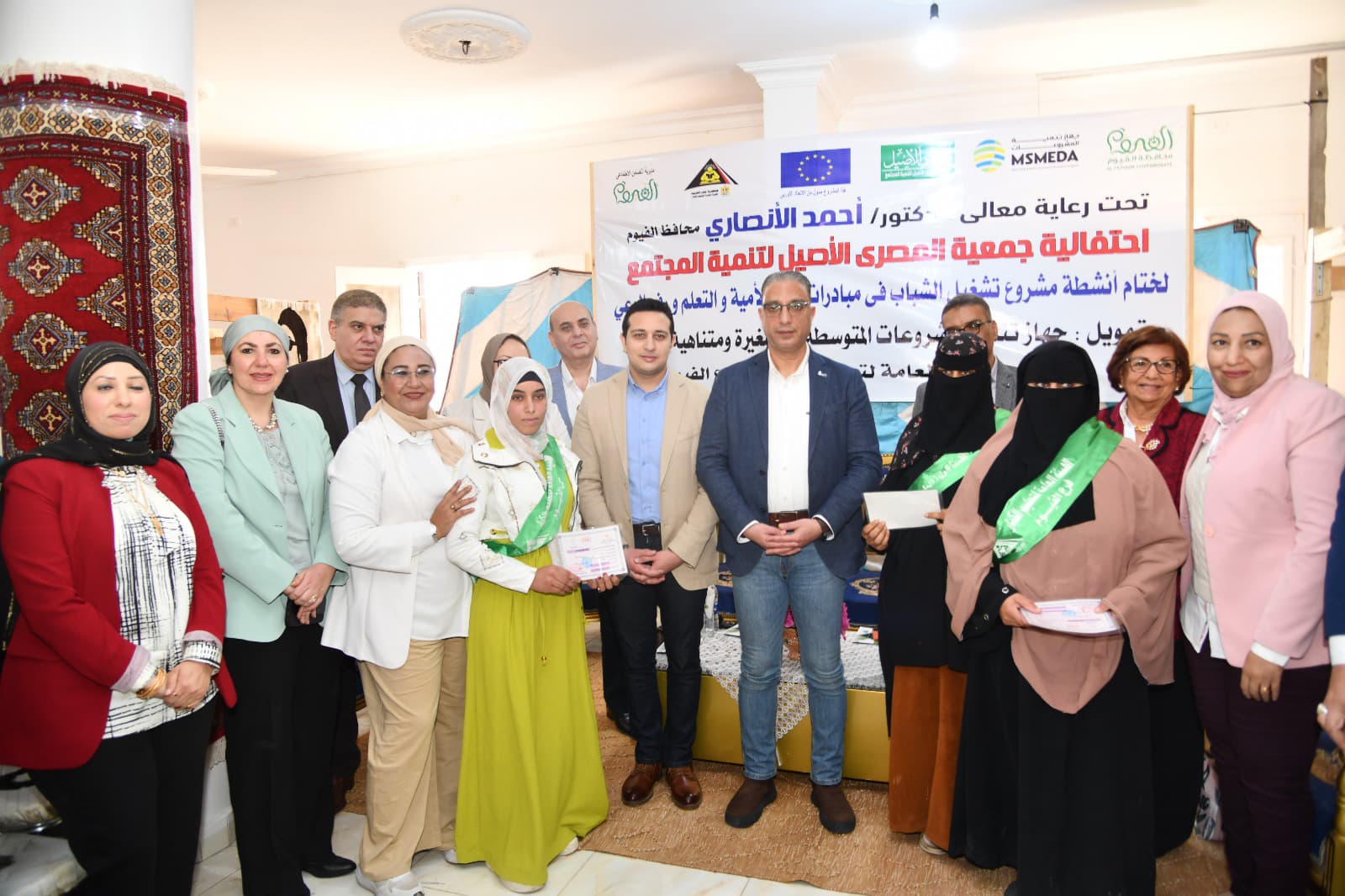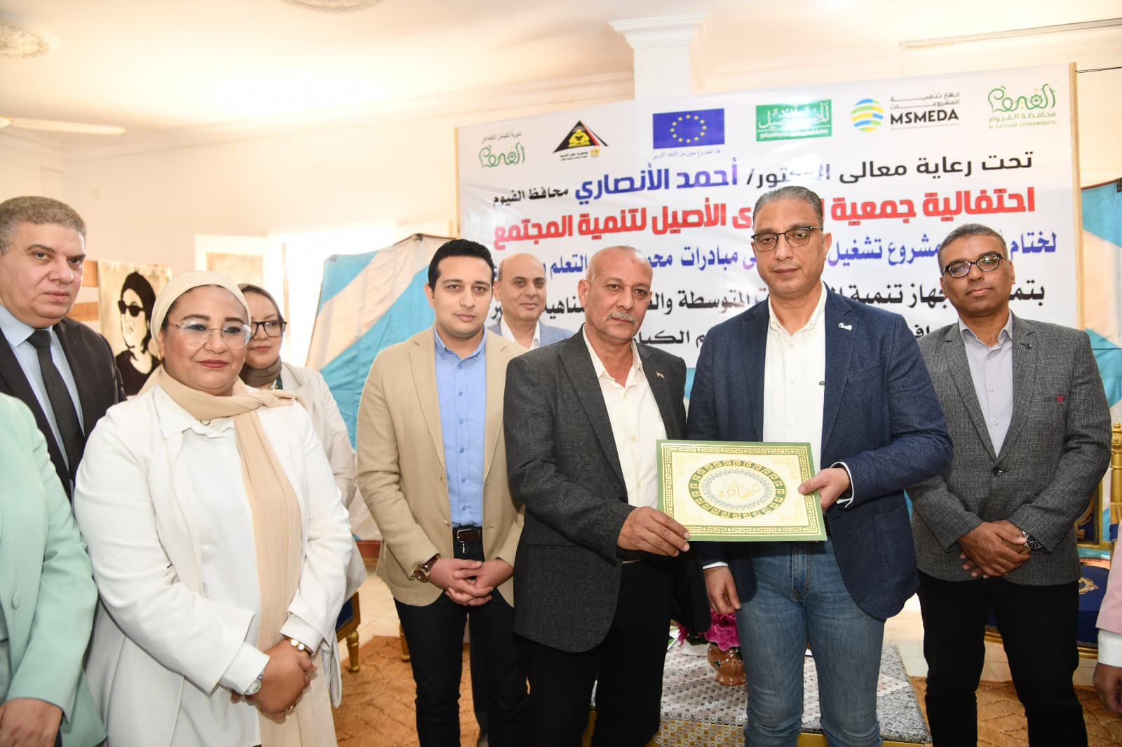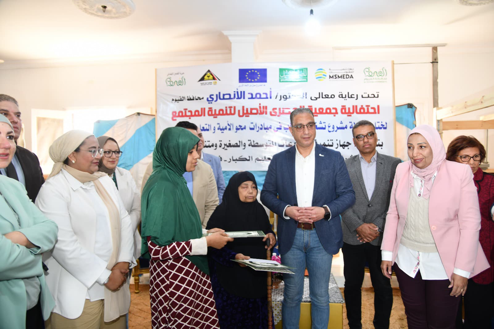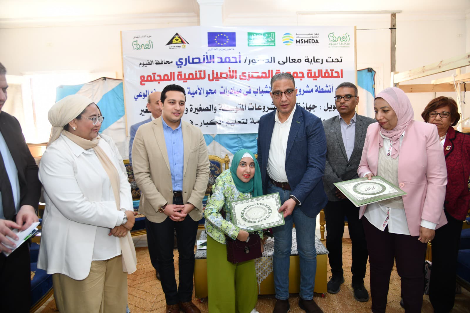 شهد الدكتور أحمد الأنصاري محافظ الفيوم، الحفل الختامي لمشروع تشغيل الشباب في مبادرات محو الأمية والتعلم ورفع الوعى بقرية الحسينية، التابعة لمركز إطسا، الممول من جهاز تنمية المشروعات المتوسطة والصغيرة ومتناهية الصغر، بالتنسيق مع الاتحاد الأوروبي، وبالتعاون بين محافظة الفيوم، وجمعية المصري الأصيل لتنمية المجتمع.