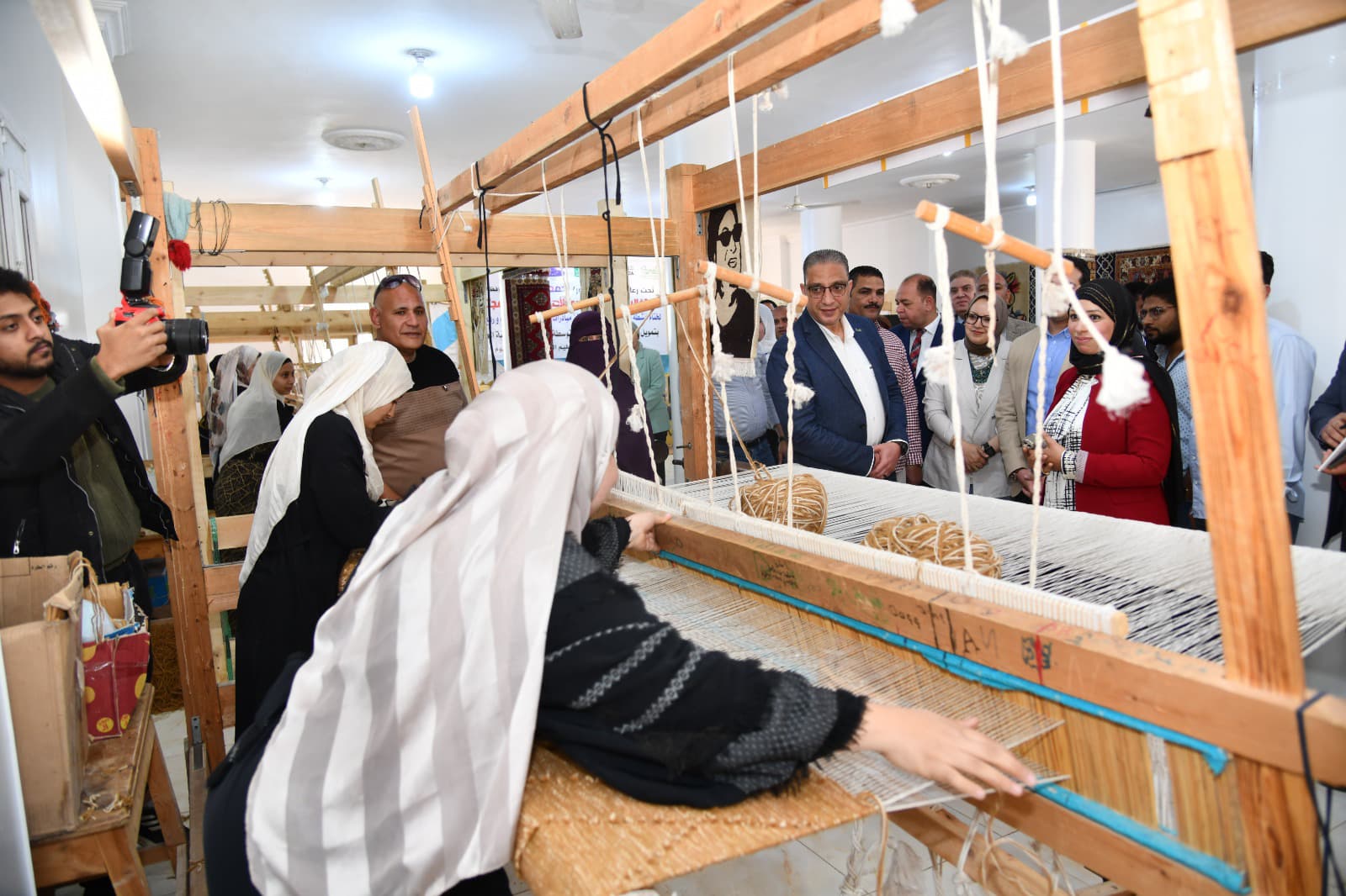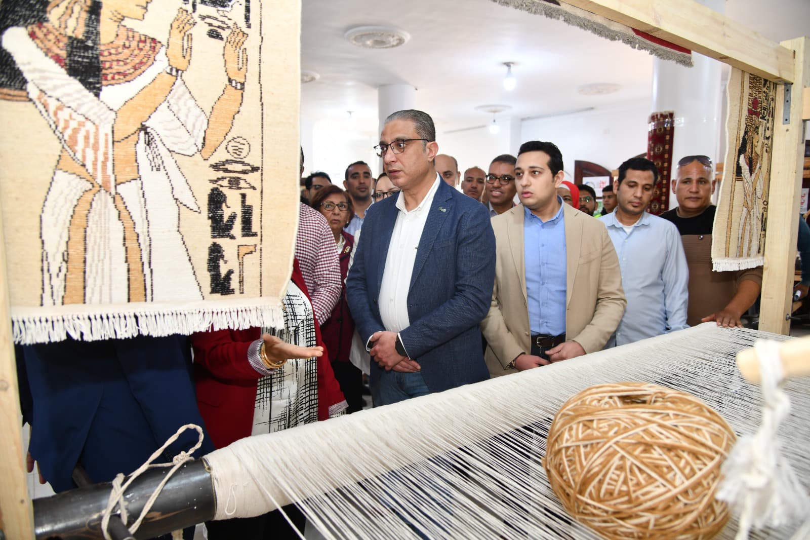بدأت الاحتفالية، بتفقد محافظ الفيوم ومرافقوه، مقر جمعية المصري الأصيل بقرية الحسينية، ومعرض منتجاب الورش الحرفية بها، الذي ضم (مشغولات للسجاد اليدوي والكليم، وأعمال التفصيل والخياطة والتطريز، والكروشيه والتريكو، وأشغال النجارة والأثاث المنزلي، والديكوباج “الرسم على الخشب والزجاج”)، وأشاد المحافظ بجودة الأعمال بالمعرض، وناقش المتدربات في أعمالهن الحرفية واستمع لقصص نجاحهن، كما تفقد ورشة تعليم القراءة والكتابة للفتيات والسيدات، واحتفظ بإهداء بخط يد إحدى المتعلمات، مؤكداً على أهمية توفير الإمكانات للمتدربات على الحرف ومتعلمات القراءة والكتابة، لاستغلال قدراتهن الاستغلال الأمثل، موجهاً ببحث إمكانية إنشاء مصنع للحرف اليدوية لخدمة أهل القرية والقرى المجاورة لها.