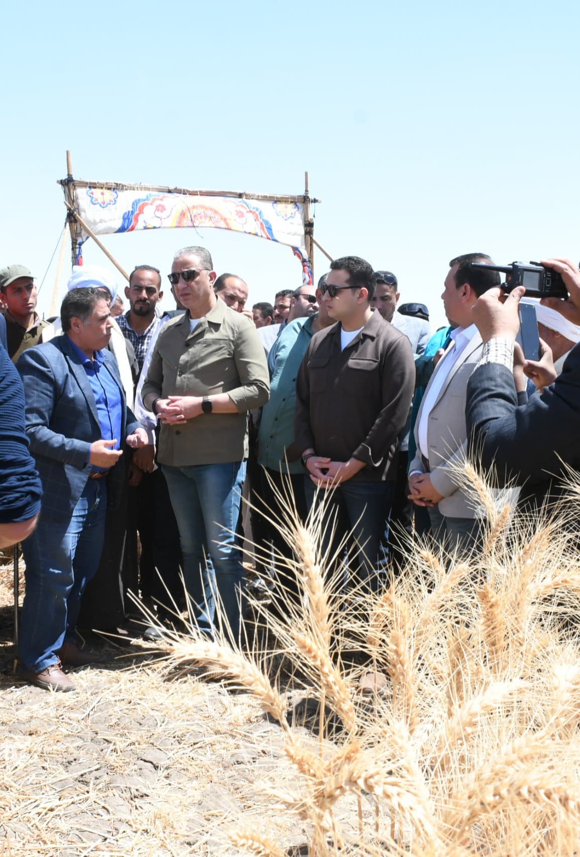 جاء ذلك بحضور الدكتور محمد التوني نائب المحافظ، والدكتور أسامة دياب وكيل وزارة الزراعة واستصلاح الأراضي بالفيوم، وسامح شبل وكيل وزارة التموين والتجارة الداخلية، والدكتور أحمد زين العابدين رئيس بحوث بقسم بحوث القمح بمعهد المحاصيل الحقلية بمركز البحوث الزراعية، رئيس الفريق العلمي للحملة القومية للنهوض بمحصول القمح بالفيوم، وسالم فتيح رئيس مركز ومدينة طامية، والمحاسب خالد عبدالظاهر أمين صندوق الاتحاد العام لروابط مستخدمي المياه على مستوى الجمهورية، والمهندس نصر شعبان مدير الإدارة الزراعية بطامية، وعدد من القيادات التنفيذية، ومسئولي مديريتي الزراعة والتموين بالفيوم.