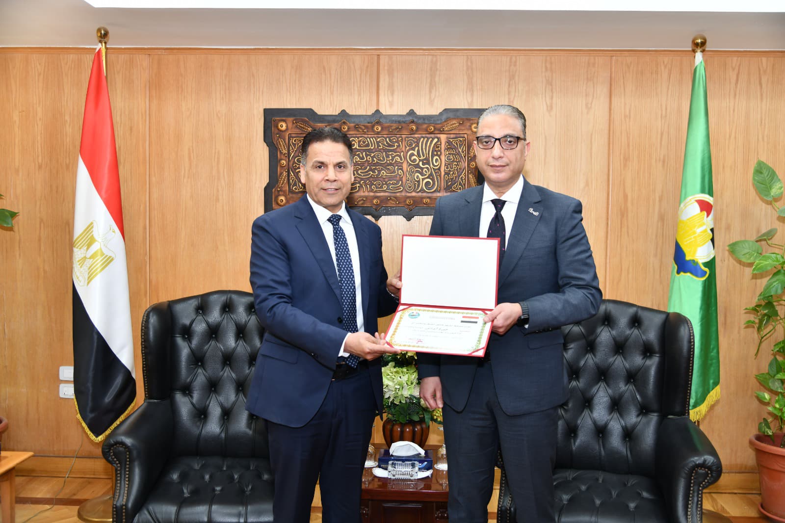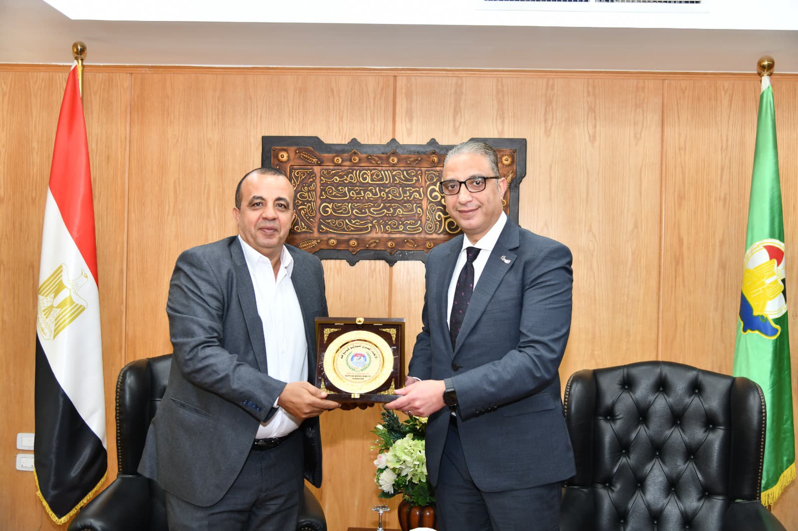 في ختام اللقاء، قدم رؤساء وأعضاء الاتحادات الرياضية من أبناء محافظة الفيوم، دروعاً تذكارية للدكتور أحمد الأنصاري محافظ الفيوم، والدكتور محمد التوني نائب المحافظ، تقديراً لجهودهما في دعم الأنشطة الرياضية على أرض المحافظة.