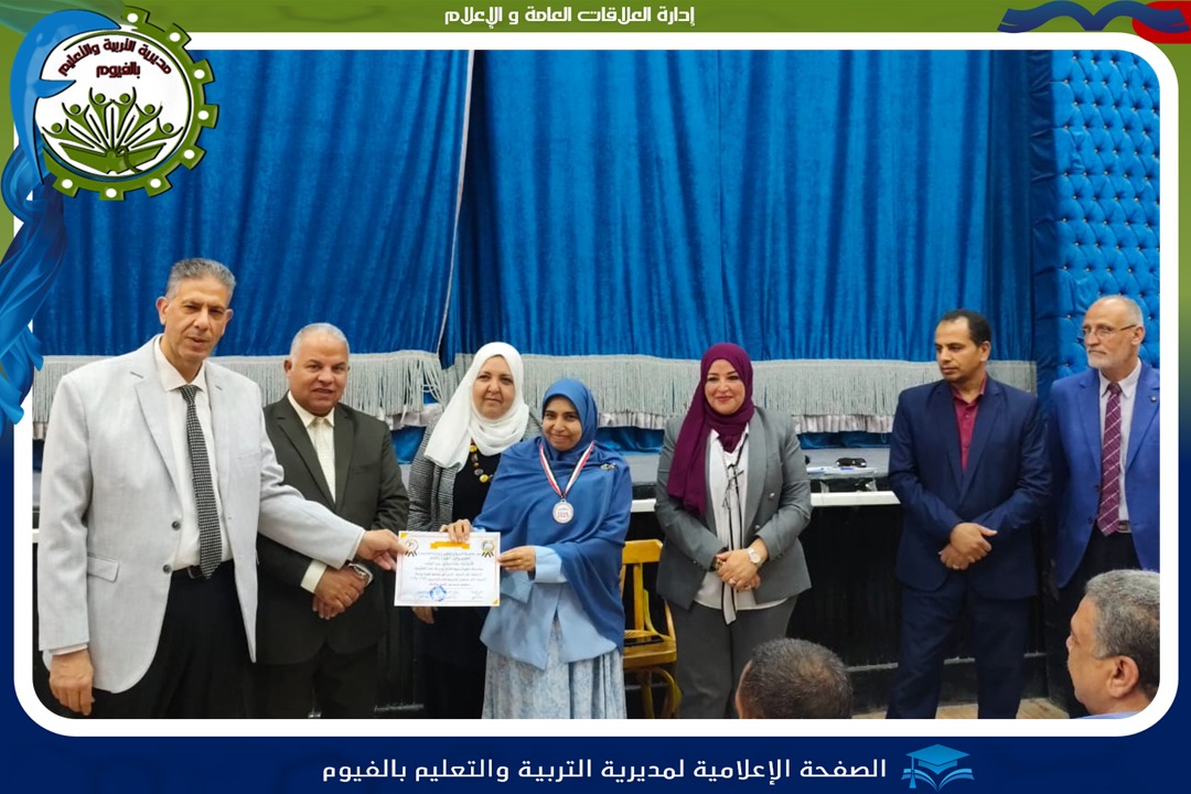 حيث تم تكريم، فاتن عبد الحميد محمود، مسئول وحدة التدريب بمدرسة صلاح سالم الابتدائية – إدارة سنورس التعليمية لحصولها على المركز الأول على مستوى المحافظة في مسابقة “أفضل وحدة تدريب”.