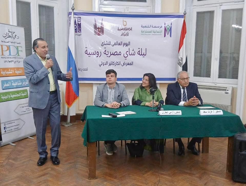 كما شاركت الجمعية المصرية للكاريكاتير بمعرض لرسامي الكاريكاتير بمجموعة من الفنانين المصريين والروس والعرب عن ثقافة الشاي لدى الشعوب نظمه الفنان فوزي مرسي امين عام جمعية الكاريكاتير.