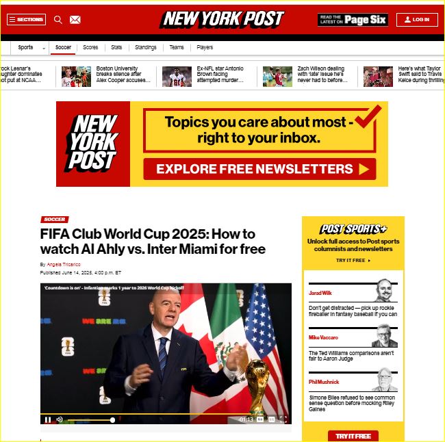 السبت 14 يونيو: الأهلي × إنتر ميامي (هارد روك ستاديوم – ميامي – 20:00)
