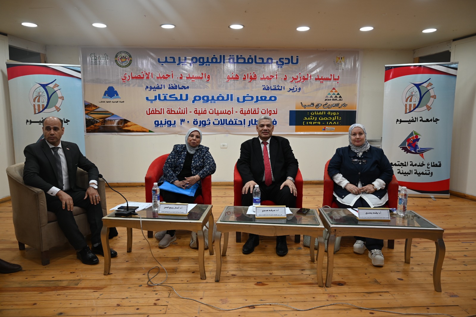 جامعة الفيوم تشارك في معرض الكتاب الأول للمحافظة.. بندوة الجامعة قاطرة المجتمع