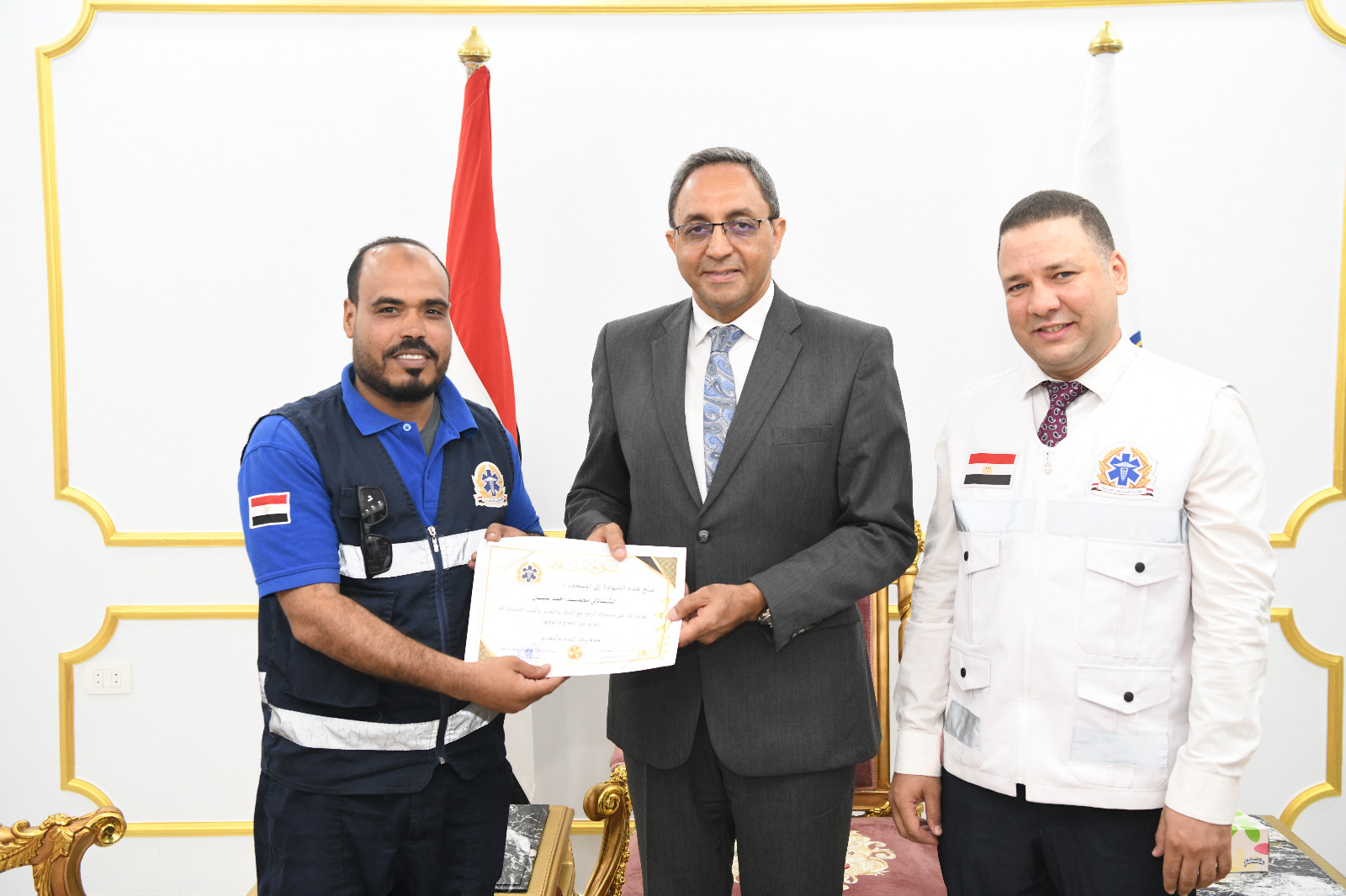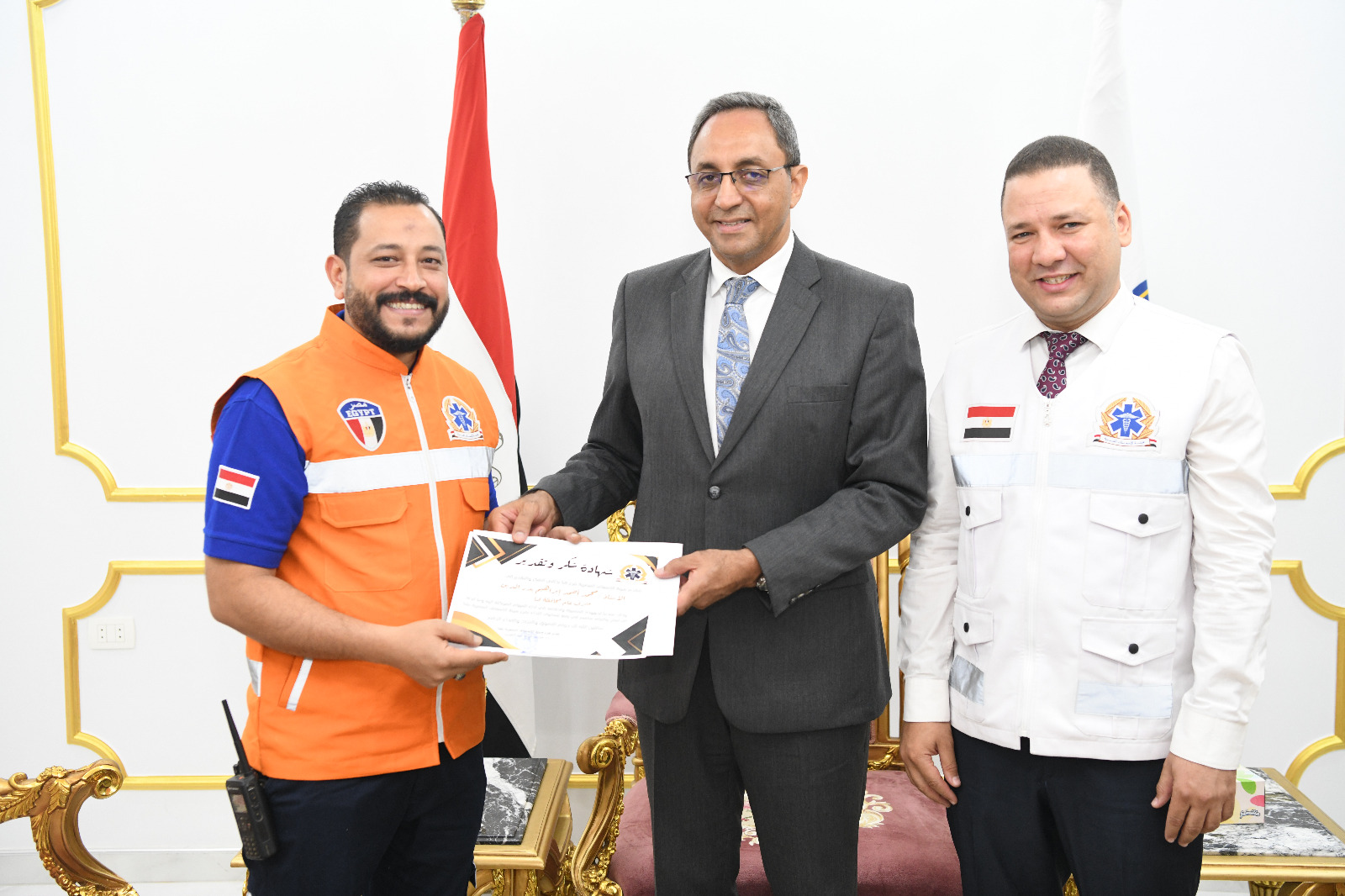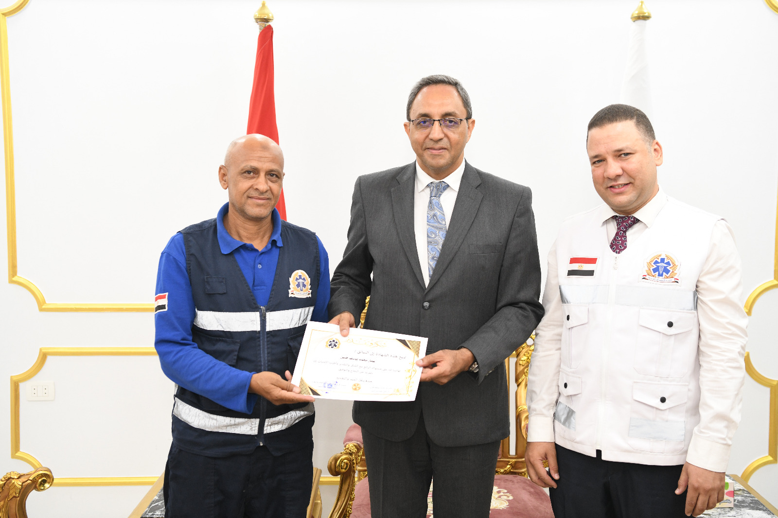 جاء ذلك بحضور الدكتور حازم عمر نائب المحافظ والدكتور محمد فؤاد مدير فرع هيئة الإسعاف بقنا والدكتور مأمون عبدالحفيظ المستشار القانوني للهيئة.
