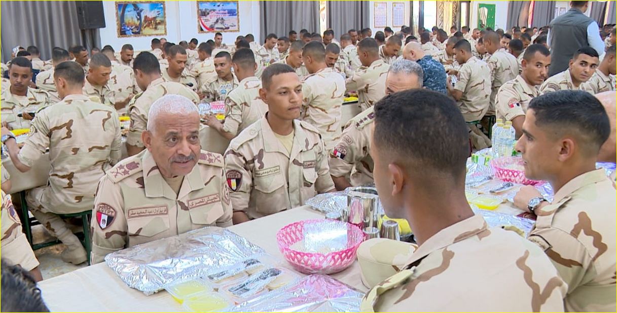 يأتي ذلك فى إطار سلسلة اللقاءات التى تقوم بها القيادة العامة للقوات المسلحة للوقوف على الحالة المعنوية والكفاءة القتالية للمقاتلين .