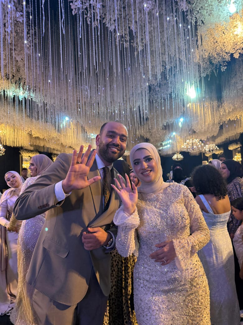 وقد سادت أجواء الفرح والبهجة الحفل، الذي استمر حتى الساعات الأولى من صباح اليوم التالي، وسط أجواء مبهجة، وتمنيات بالسعادة للعروسين.