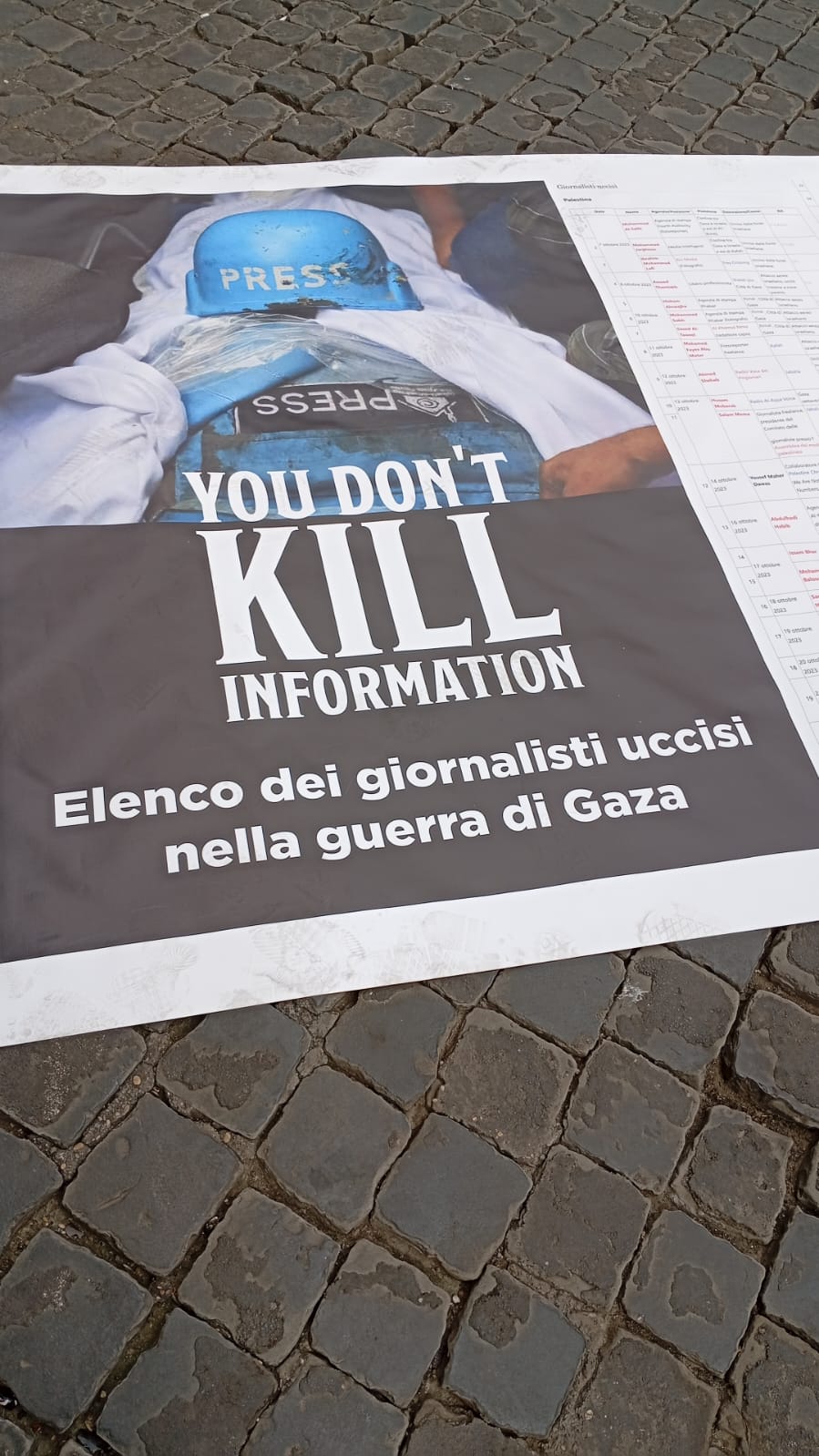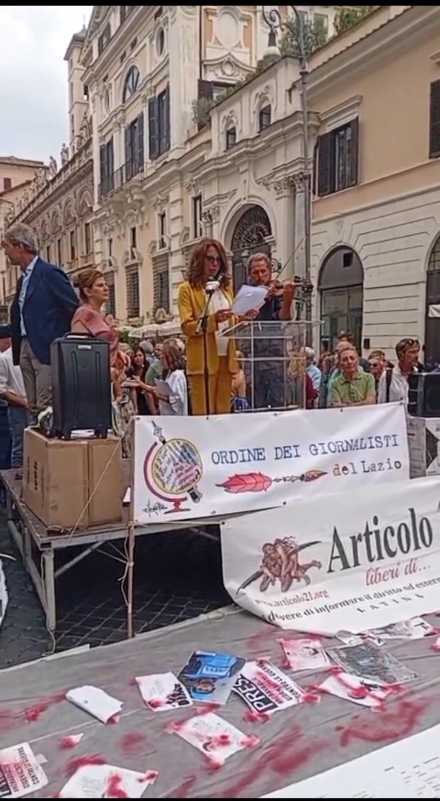 نُظّمت الفعالية في ساحة كامبيدوليو التاريخية وسط العاصمة، بمشاركة المئات من الصحفيين والإعلاميين الإيطاليين ومراسلي الصحافة الأجنبية، يتقدمهم رئيس نقابة الصحفيين الإيطاليين، كارلو بارتولي إلى جانب عدد من الشخصيات العامة ومشاهير الإعلام.
