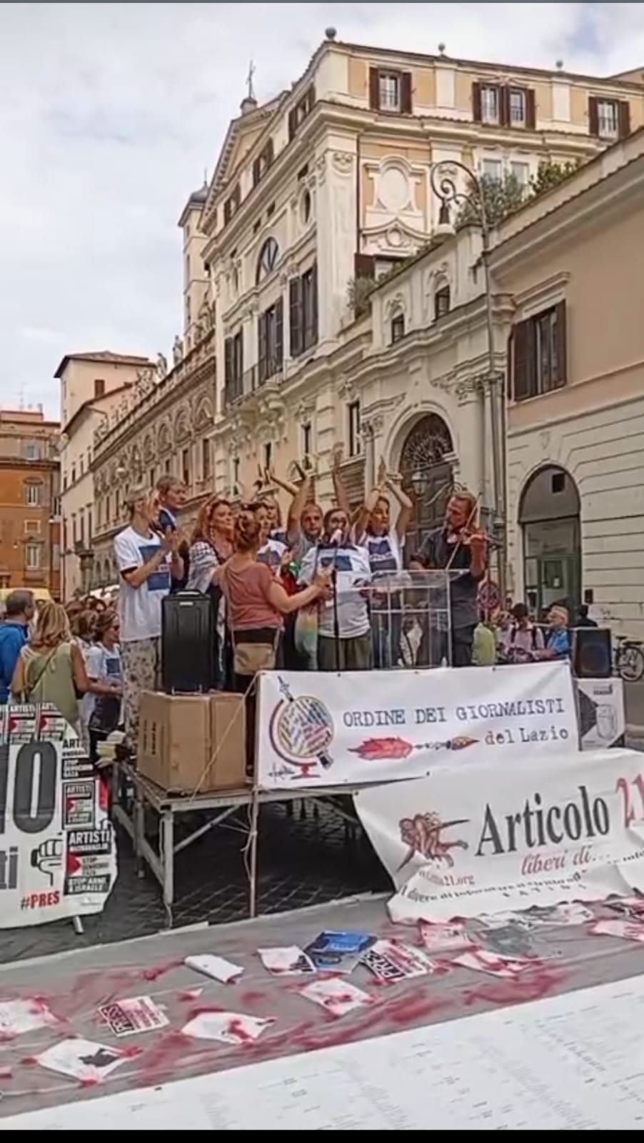 شهدت العاصمة الإيطالية روما، اليوم، وقفة حاشدة دعا إليها اتحاد ونقابة الصحفيين الإيطاليين، إحياءً لذكرى شهداء الصحافة في قطاع غزة منذ اندلاع العدوان الإسرائيلي في السابع من أكتوبر 2023، والذي أسفر عن مقتل ما لا يقل عن 278 صحفياً وإعلامياً برصاص جيش الاحتلال الإسرائيلي أثناء تغطيتهم للحرب الدائرة هناك.