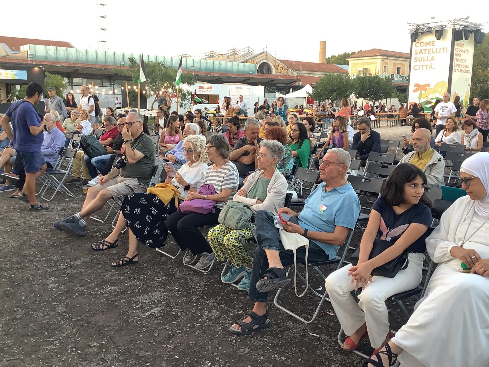 شهدت العاصمة الإيطالية واحداً من أكثر أيام مهرجان الثقافة الفلسطينية السادس زخماً منذ انطلاقه، حيث امتلأت ساحات المهرجان بالحضور من أبناء الجالية العربية وسكان روما، ما عكس اهتماماً واسعاً من المجتمع الإيطالي بالقضية الفلسطينية، خاصة في ظل ما تشهده غزة من أحداث مأساوية.