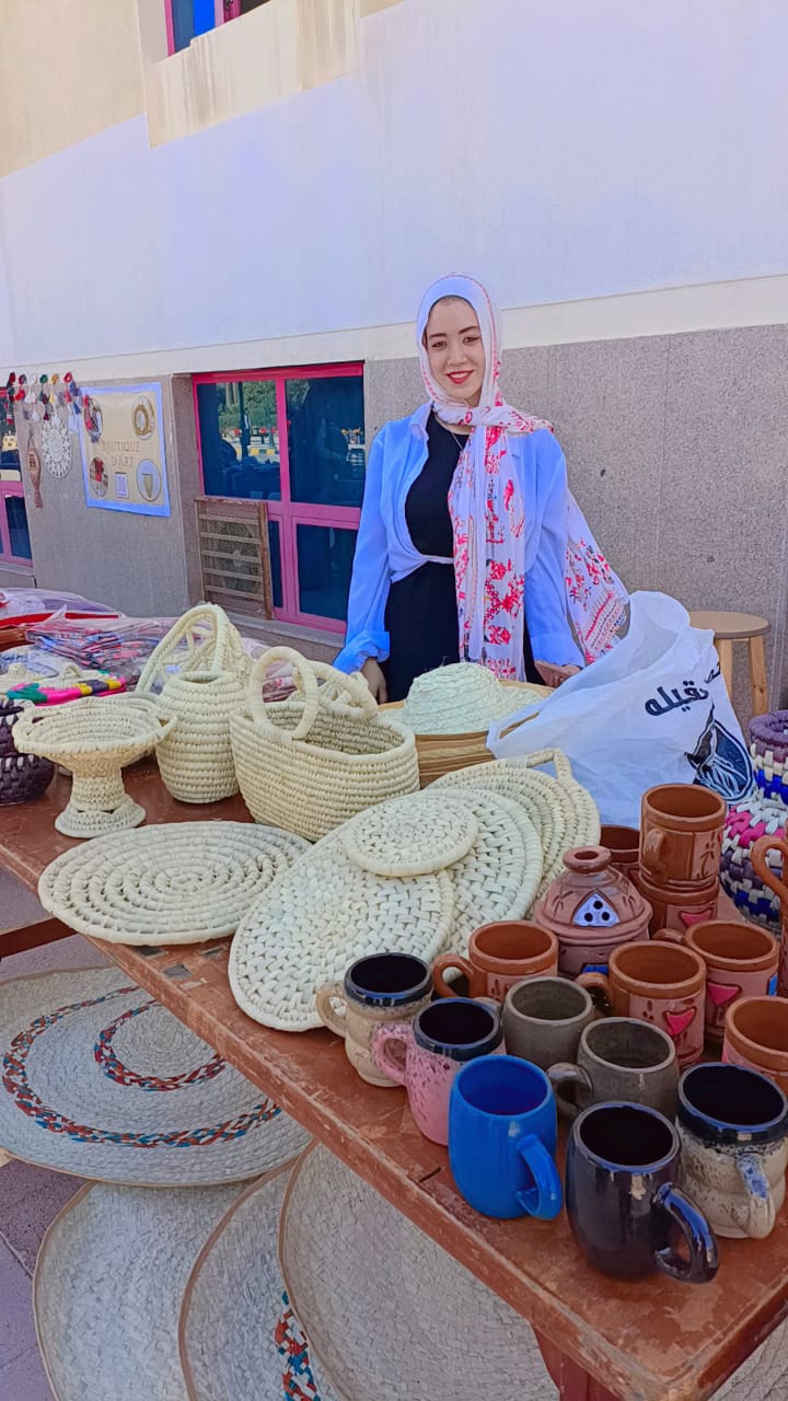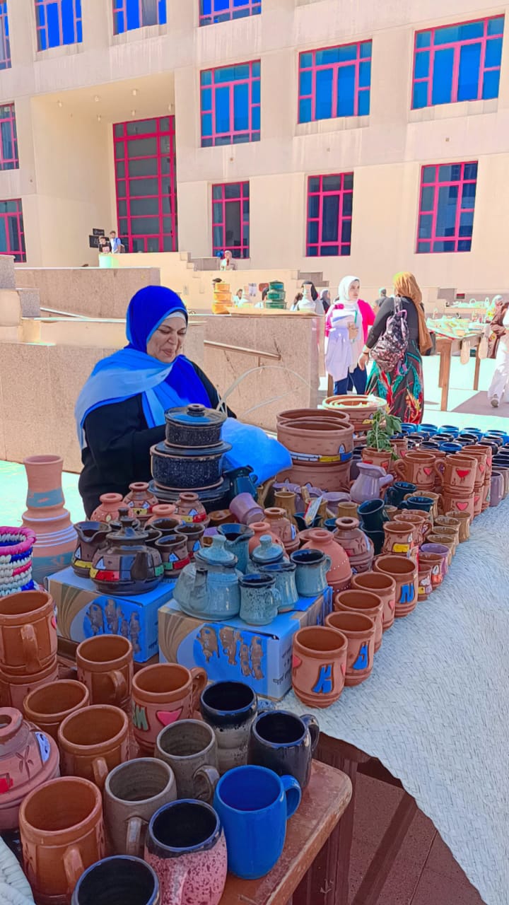 وقد ضم المعرض باقة متنوعة من المنتجات اليدوية، شملت أعمال الخوص والفخار اليدوي والمشغولات اليدوية والتطريز والكروشية وصناعة الشموع والمكرمية، والتي عكست إبداع العارضين وتمسكهم بالهوية المصرية الأصيلة.