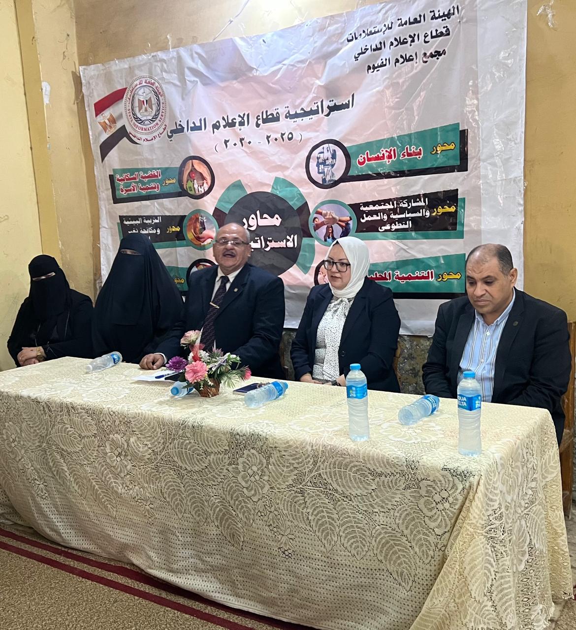 نظم مجمع إعلام الفيوم التابع لقطاع الإعلام الداخلي الهيئة العامة للاستعلامات اليوم لقاءًا إعلاميًا حول ” الزواج المبكر و الوقاية من الأمراض الوراثية” بجمعية تنمية المجتمع بقرية العزب ، وذلك بالتعاون مع مديريتي الصحة و التضامن الاجتماعي وياتي هذا اللقاء ضمن محور القضية السكانية لاستراتيجية قطاع الاعلام الداخلي برعاية الكاتب الصحفي الدكتور ضياء رشوان رئيس الهيئة و اشراف و توجيهات الدكتور احمد يحيى رئيس قطاع الاعلام الداخلي.