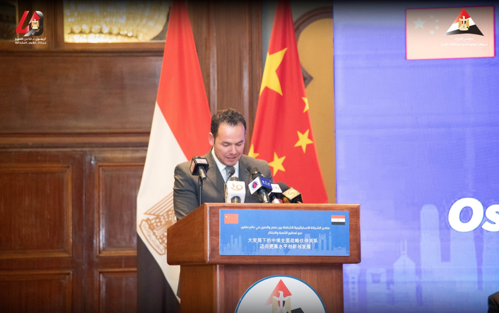 سلطت كلمات الافتتاح الضوء على عمق ومتانة العلاقات الثنائية بين البلدين، وفى هذا الصدد أكد د. أسامة الجوهري رئيس مركز المعلومات ودعم اتخاذ القرار أن العلاقات بين مصر والصين تمثل “نموذجاً راسخاً لشراكة استراتيجية شاملة”. ووصف المنتدى بأنه فرصة حقيقية لـ “تطوير مسارات جديدة للتعاون”.