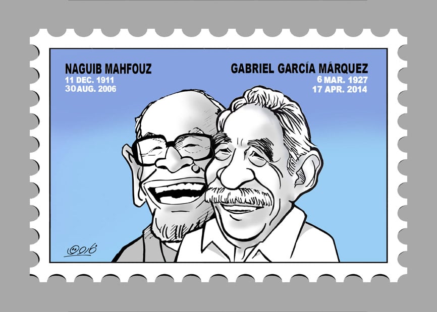 ويضم المعرض مجموعة متميزة من البورتريهات الكاريكاتيرية التي تجمع نجيب محفوظ مع نخبة من كبار رموز الأدب العالمي، في حوار بصري يعكس القيم الإنسانية المشتركة بين الثقافات المختلفة.