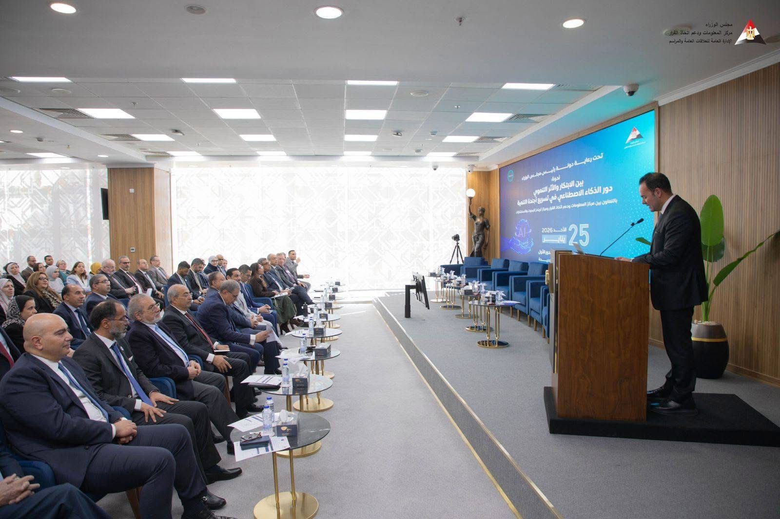 نظم مركز المعلومات ودعم اتخاذ القرار بمجلس الوزراء ندوة رفيعة المستوى بالتعاون مع مركز “تريندز” للبحوث والاستشارات بدولة الإمارات، بمقره الرئيسي بالعاصمة الإدارية الجديدة، تحت عنوان: “بين الابتكار والأثر التنموي.. دور الذكاء الاصطناعي في تسريع أجندة التنمية”، وذلك في إطار الشراكة الاستراتيجية بين الجانبين لتعزيز العمل البحثي والمعرفي دعمًا لمسيرتهما ضمن أبرز مراكز الفكر في المنطقة.