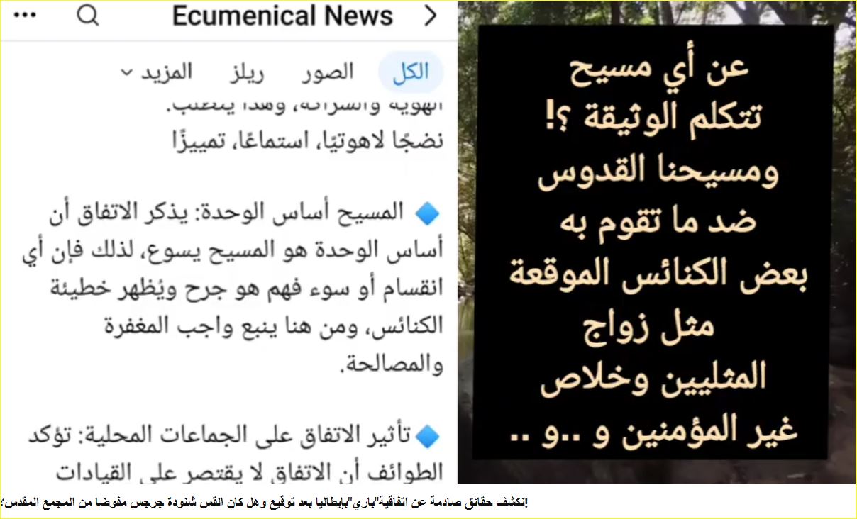 الوثيقة شددت كذلك على أن التخلي عن هذه الالتزامات يُعد «خيانة للدعوة المسيحية»، وهو توصيف اعتُبر خطيرًا، لأنه يربط الإيمان المسيحي بالالتزام بمسار مسكوني مثير للخلاف، ويضع الكنائس الرافضة موضع الاتهام.
