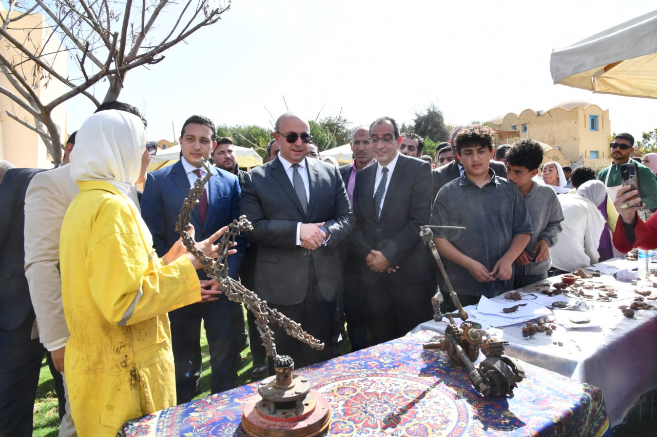كما تفقد ورش الرسم والأعمال الإبداعية من تدوير الخردة، مشيراً أن أبناء الفيوم يمتلكون المهارة والحرفية في تنفيذ الأعمال الفنية من تدوير الخردة، لافتاً إلى أن قرية تونس تسوق منتجاتها داخل مصر وخارجها، وتشارك بمنتجاتها بالمعارض الداخلية والخارجية.